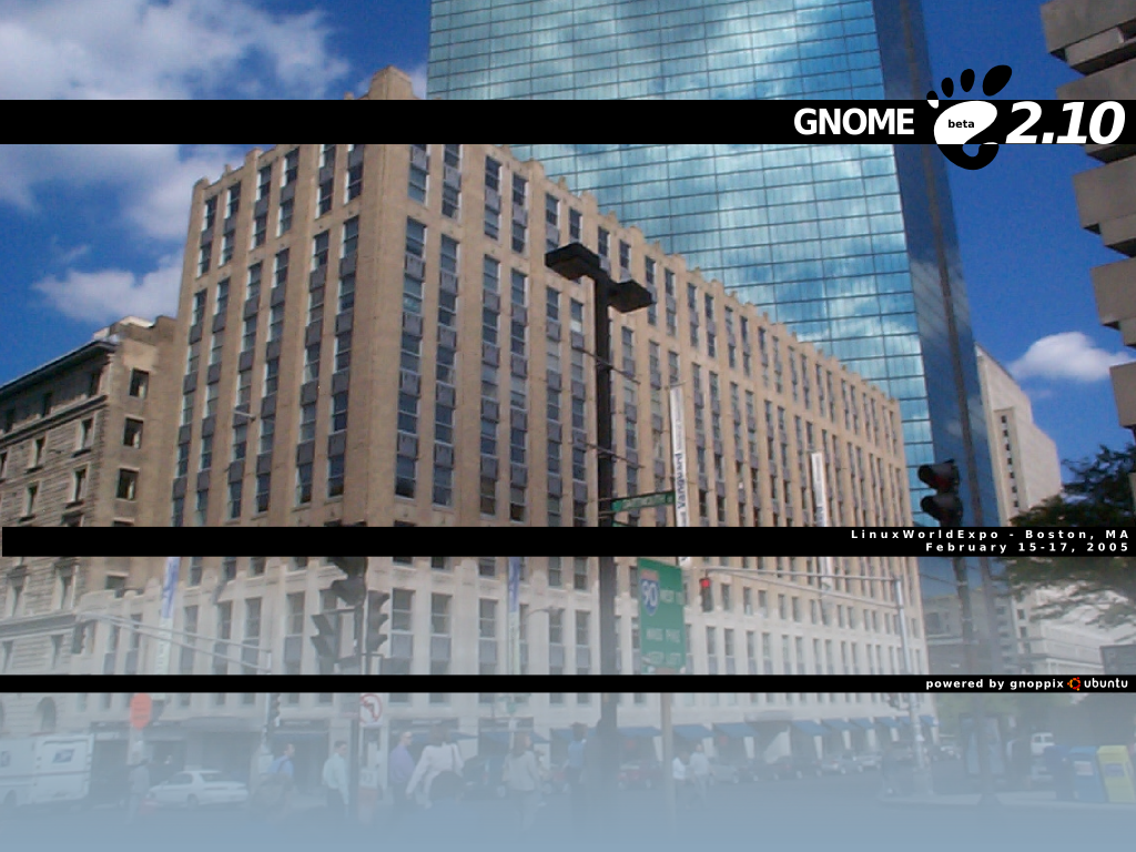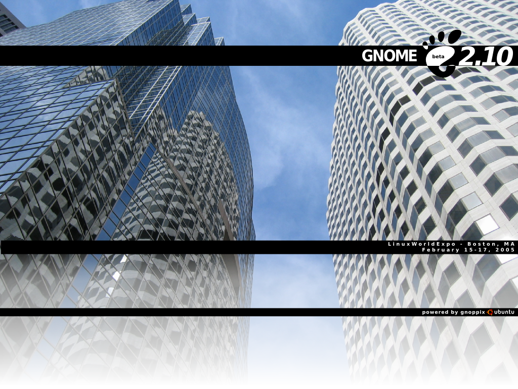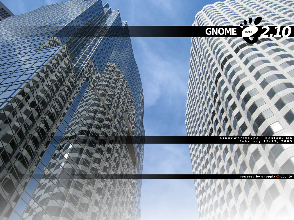 - LinuxWorldExpo GNOME CD Label 3 - Inside to outside, white to transparent gradient. This features the "reflective office buildings" picture from the "Wallpaper 1"'s above.